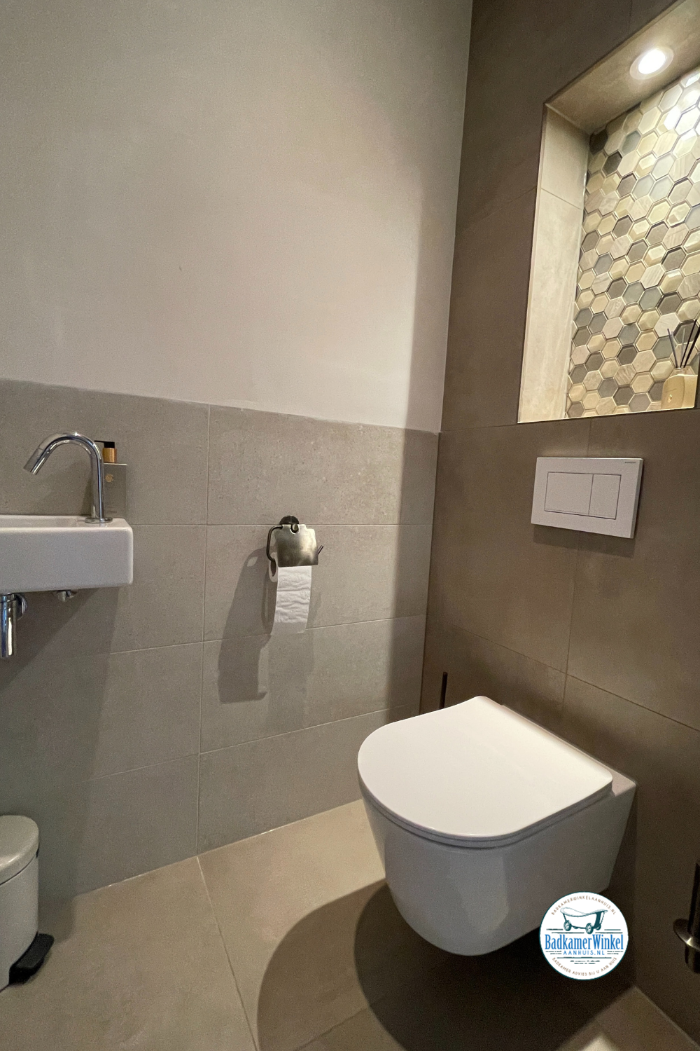 Wij zijn zeer tevreden over de twee toiletten die bij ons zijn gerealiseerd. Nieuwbouw op de eerste verdieping en renovatie van het bestaande toilet op de begane grond. Uitstekende vaklui zijn bij ons aan het werk geweest. Van sloop tot en met kitten van de naden, alles is goed op elkaar afgestemd. Top tegelzetter, top stukadoors en top loodgieters! En alles goed geregeld door Badkamerwinkel aan huis.